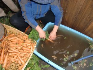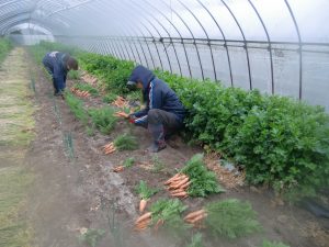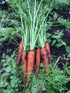 大きくなってしまったほうれん草と薄い色づきのにんじんと
